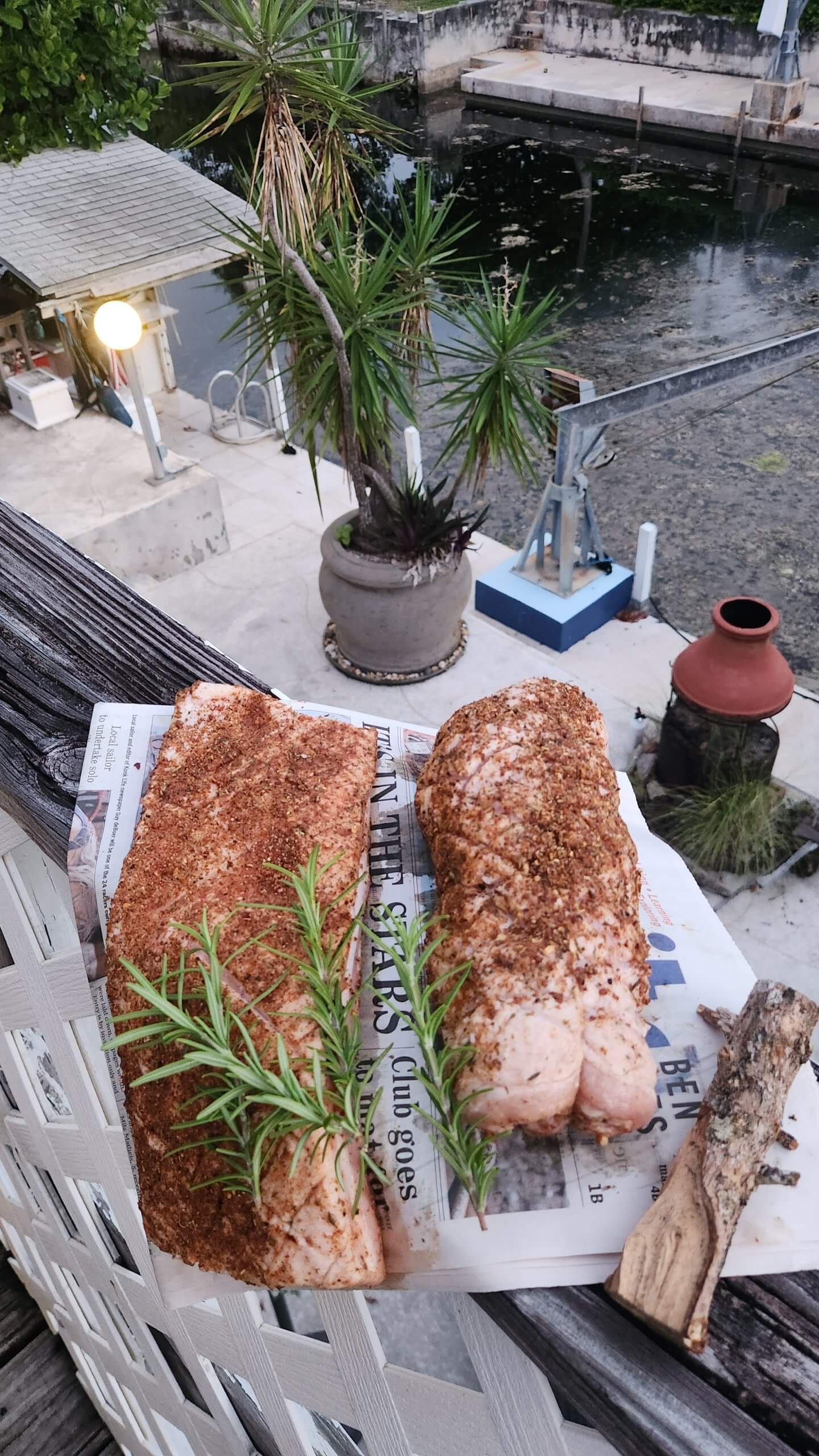 Seal tray tightly with foil. Place a towel on top to retain heat or place in a warm oven (200 deg.) and allow to rest for 5 minutes with No-Peaking!!! The seal here is important because we want the fish to hold its heat and “carry over cook” creating its own amazing mouthwatering sauce (as the dark spicy crust softens & mellows, the tender filet will finish steaming through to succulent perfection).