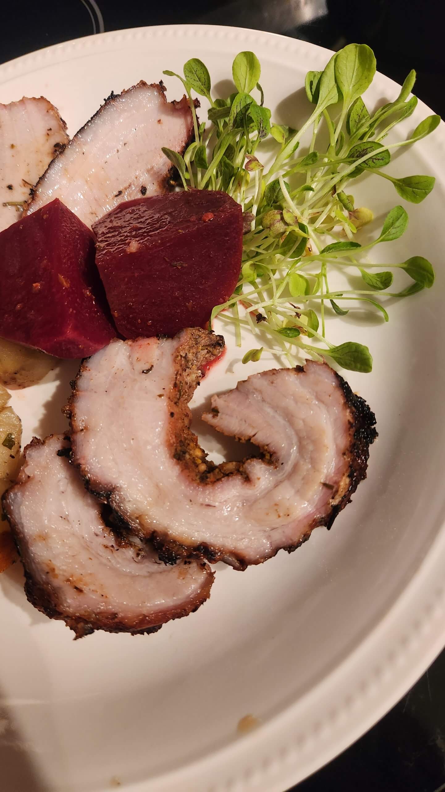Combine 1/2 of lemon juice with apple (Granny is good), carrot, onion (sweet variety) & lettuce, add 1/2 of the oil season with fresh cracked black pepper (add a pinch of your favorite seasoning here too, Buck’s Rub rocks on salads!), toss and chill.